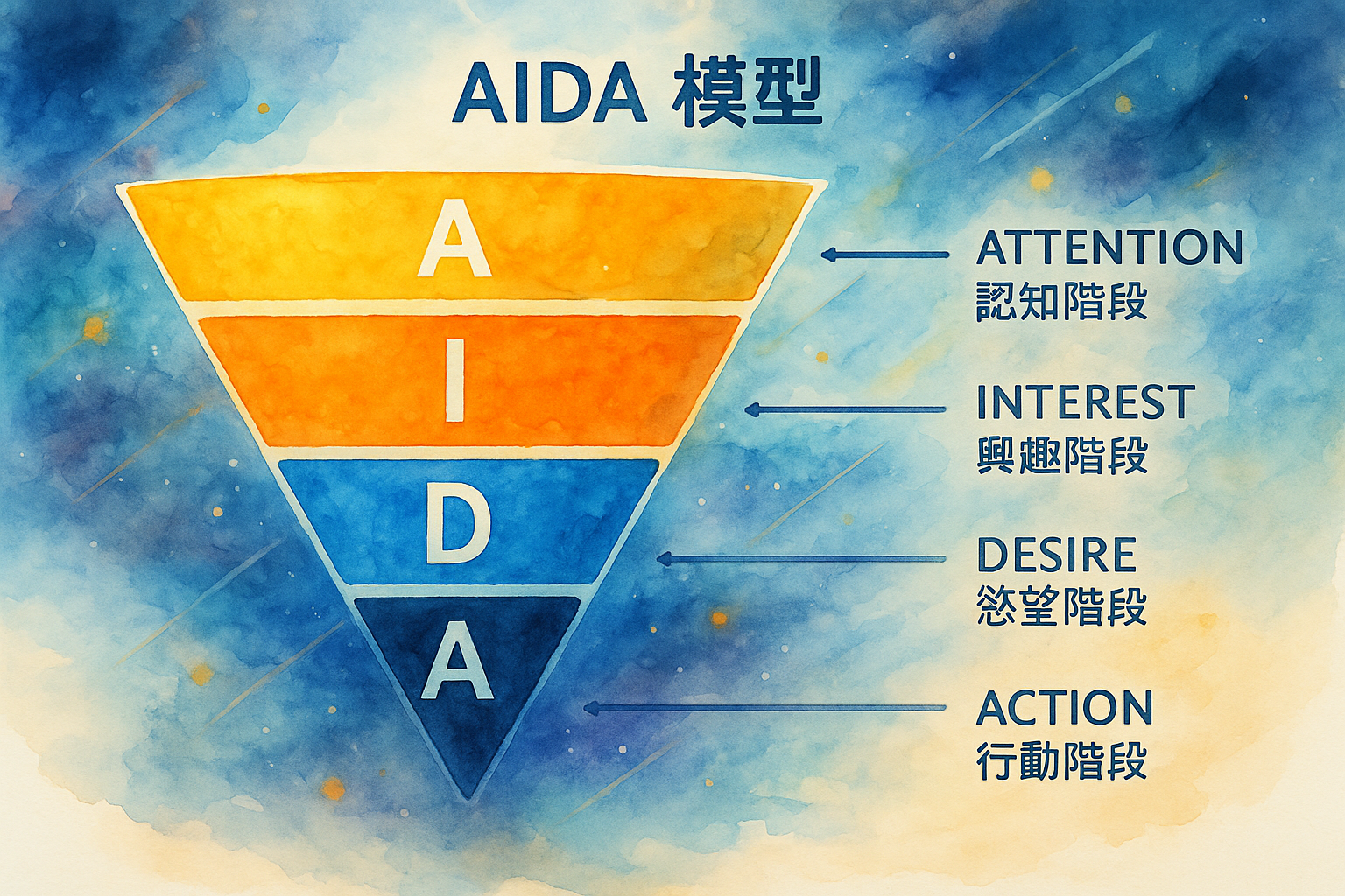 AIDA 行銷漏斗」是一個經典的消費者行為模型,它將消費者從第一次接觸品牌,到產生興趣、激發購買慾望,最終採取實際行動的完整歷程,分為四個階段:「Attention(認知)」、「Interest(興趣)」、「Desire(慾望)」和「Action(行動)」。對於品牌而言,精準掌握每個階段的策略操作,是有效推動消費者轉換、提升行銷效益的關鍵。